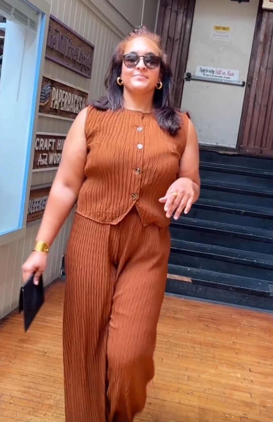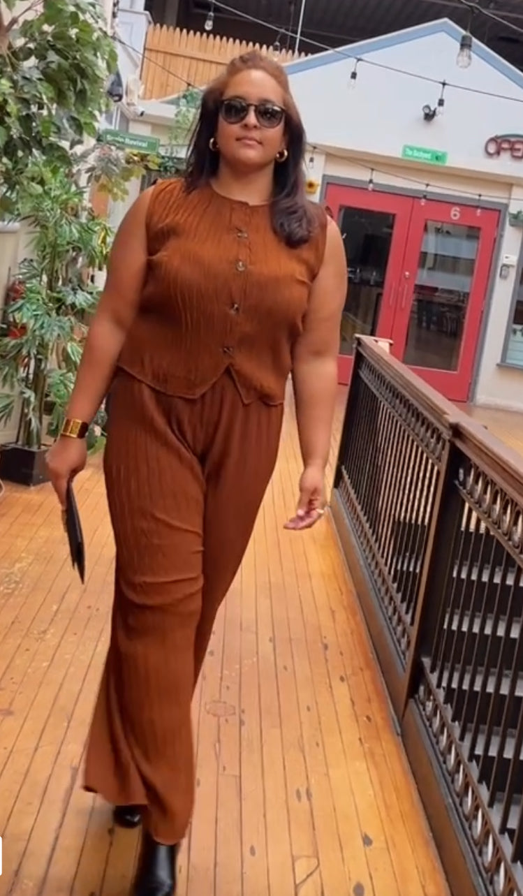 Conjunto de dos piezas pantalón y top con botones delanteros.El Conjunto Nixhia es una excelente opción para aquellos que buscan un atuendo versátil y moderno. Con este conjunto, podrás crear diversos looks para cualquier ocasión, ya sea formal o casual. Su diseño exclusivo y de alta calidad te garantiza un estilo único y elegante. ¡No te pierdas la oportunidad de lucir a la moda con el Conjunto Nixhia!