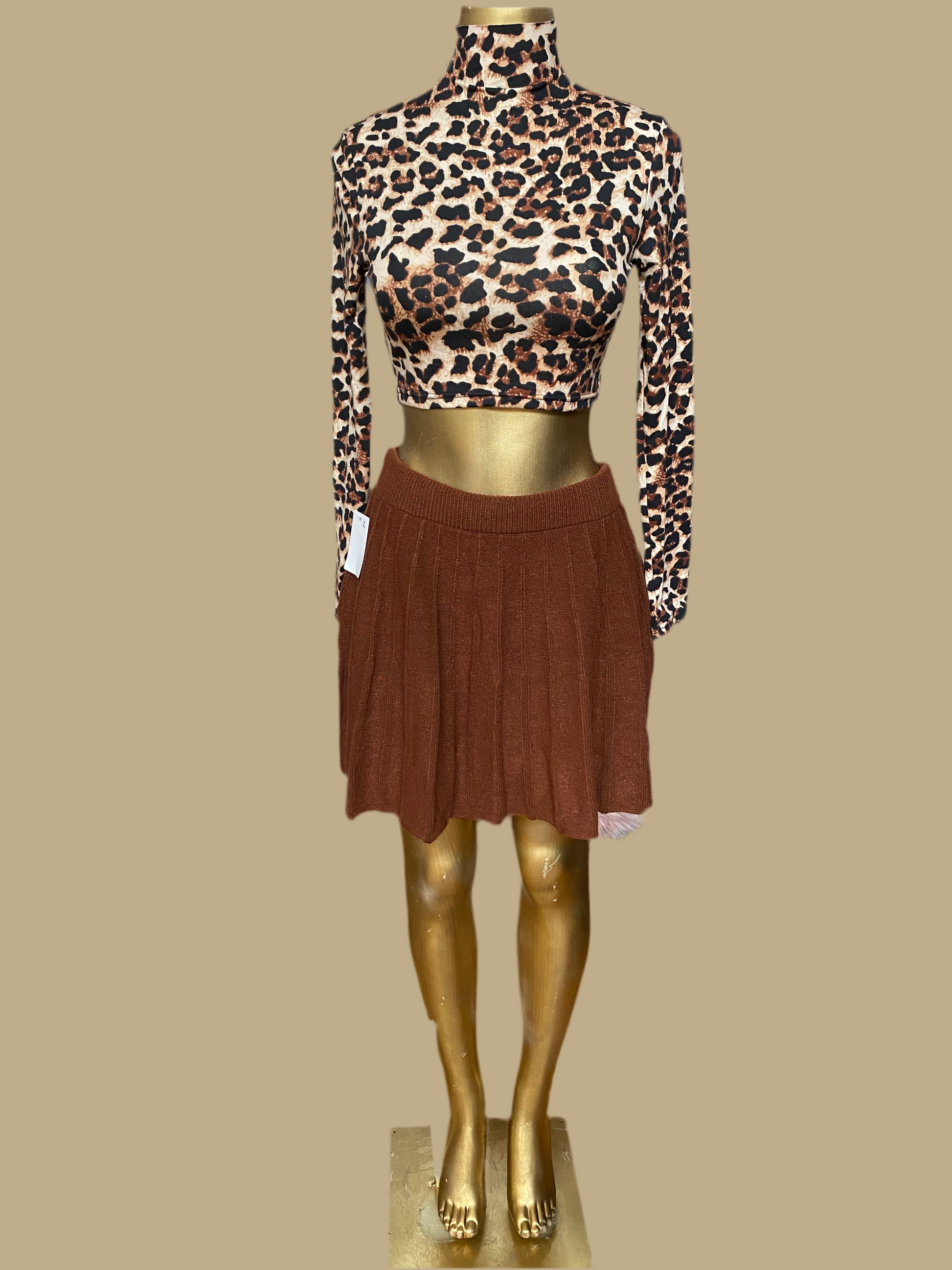 Falda corta de corte A con imitación dé pliegues con elástico en la cintura.