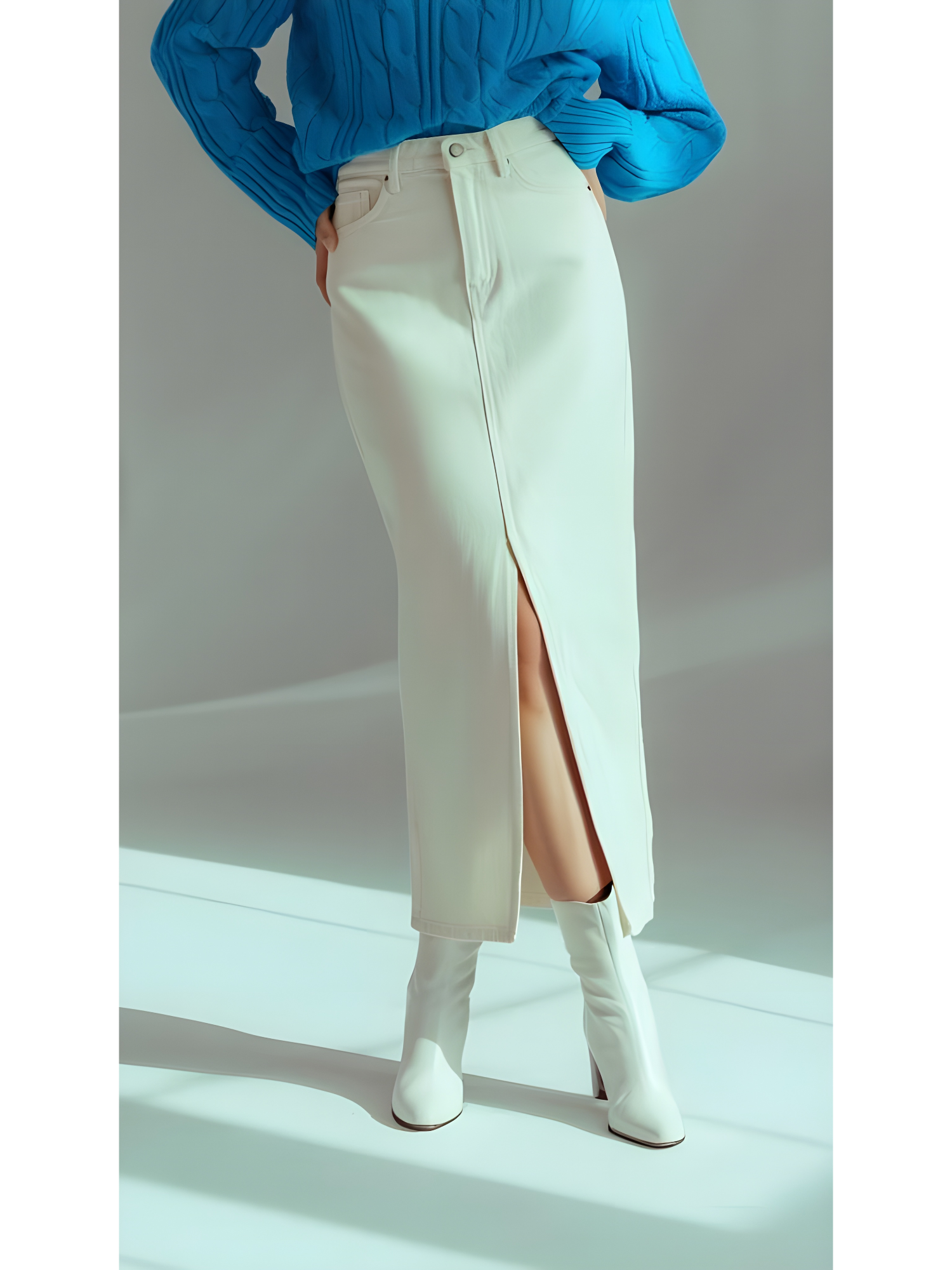 La falda Gaby es la perfecta combinación de comodidad y estilo. Confeccionada en jeans strech en un elegante color blanco, esta falda presenta una abertura frontal que te brinda suficiente confianza y sofisticación. Además, cuenta con prácticos bolsillos en la parte delantera y trasera, cierre y botón frontal para un ajuste perfecto. ¡Añade esta hermosa falda a tu guardarropa y eleva tu estilo al siguiente nivel!