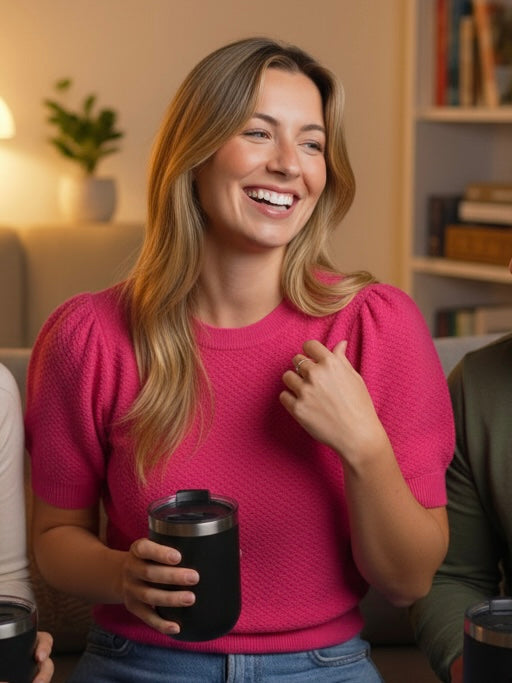 El Top Yuri presenta un diseño clásico con cuello redondo y mangas puff cortas, confeccionado en un vibrante color fucsia. Su estilo atemporal lo convierte en una opción elegante para diversas ocasiones, permitiendo múltiples combinaciones en el vestuario. Ideal para quienes buscan versatilidad y distinción en su ropa.